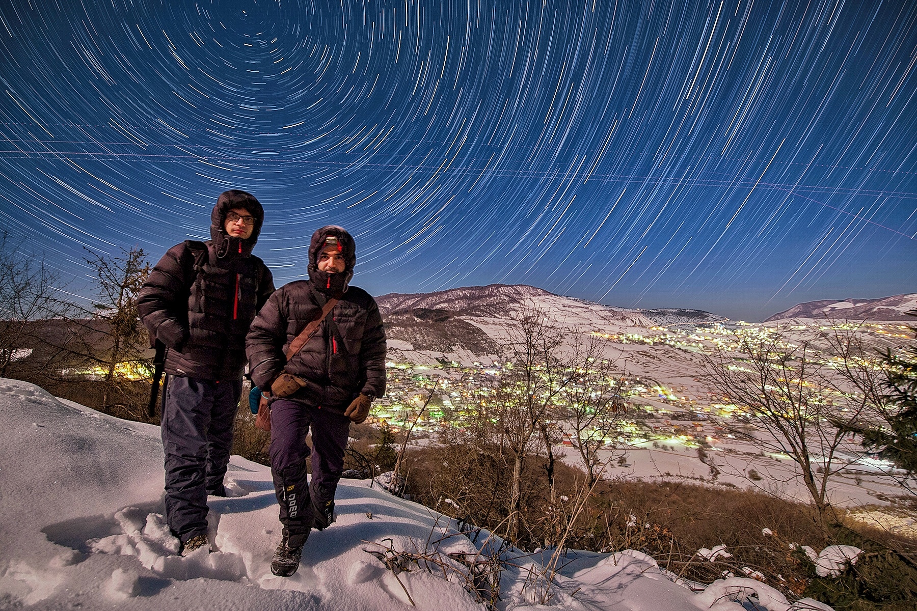 This is how I like to remember winter: quiet mountains, a sleeping village, and the sky slowly painting circles above our heads while the shutter stays open.
